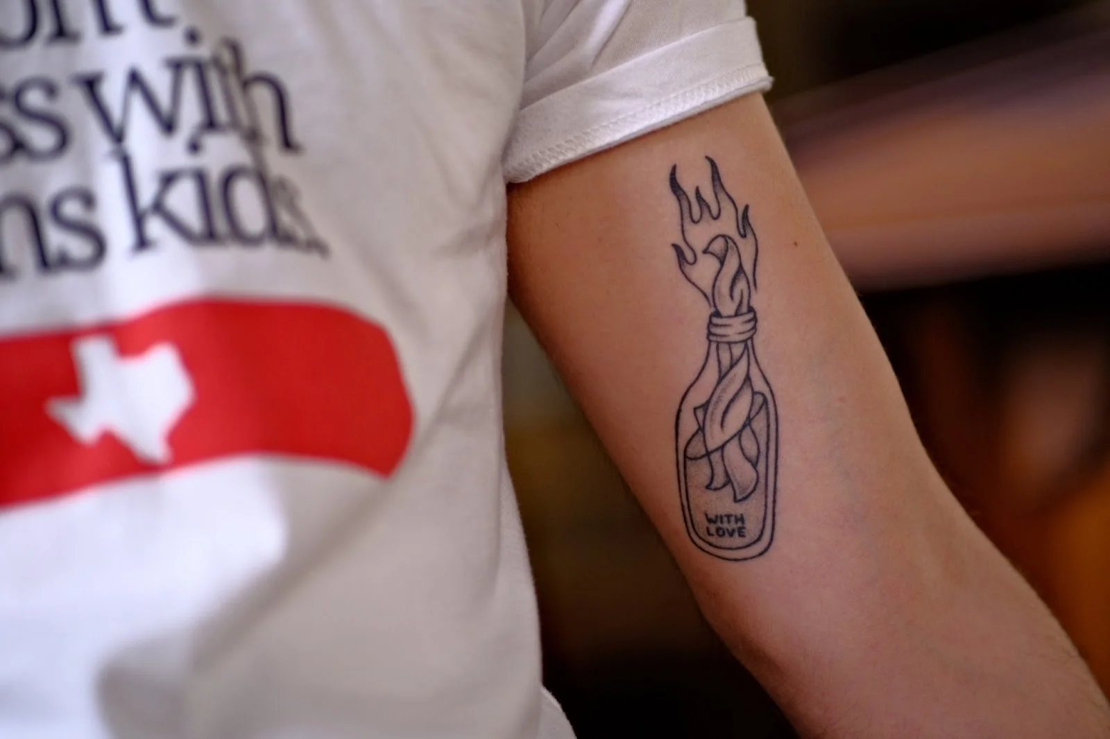 People came with all sorts of stories, all sorts of artwork. One young man named Daniel was photographed with his tattoo of a Molotov cocktail bearing an inscription to the Church that reads “with love” (shown above). To Daniel, his tattoo of holy rebuke speaks to his desire to transform the church into a more inclusive and safe space for LGBTQIA2S+ individuals.