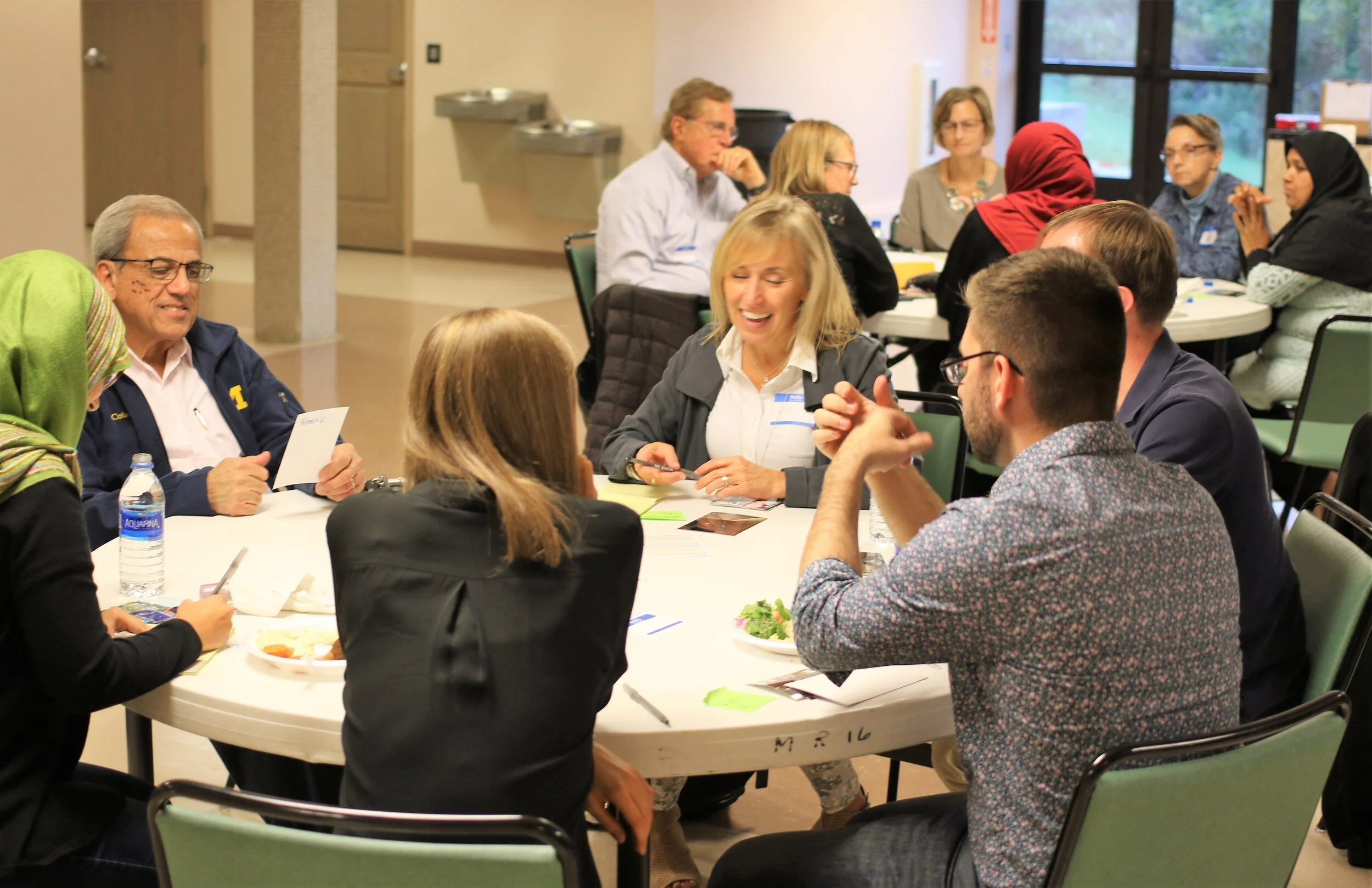 Our initial work began in 2017 in three North American locations with funding from the Louisville Institute. We limited our first three projects to Muslims and Christians so we could focus on our approach. In Richmond (Virginia), Grand Rapids (Michigan), and Fredericton (New Brunswick, Canada), participants spent at least one session discussing each of the questions above. They sat at tables of 4-6 people and took turns showing one another photos and sharing the stories behind them. They asked each other questions and sustained thoughtful conversations. Sometimes participants laughed. They nodded in agreement. They learned to look deeply into one another’s lives through the window provided by the photograph. In their final meetings, participants worked together to curate a collection of photos that could be used in an exhibition intended to share the collective experience and insights of the group with their broader community.